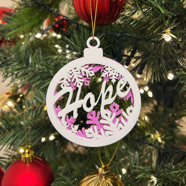 A beautifully crafted acrylic, circular HOPE bauble - lightweight, meaningful, and designed to brighten any tree. #sharethelight