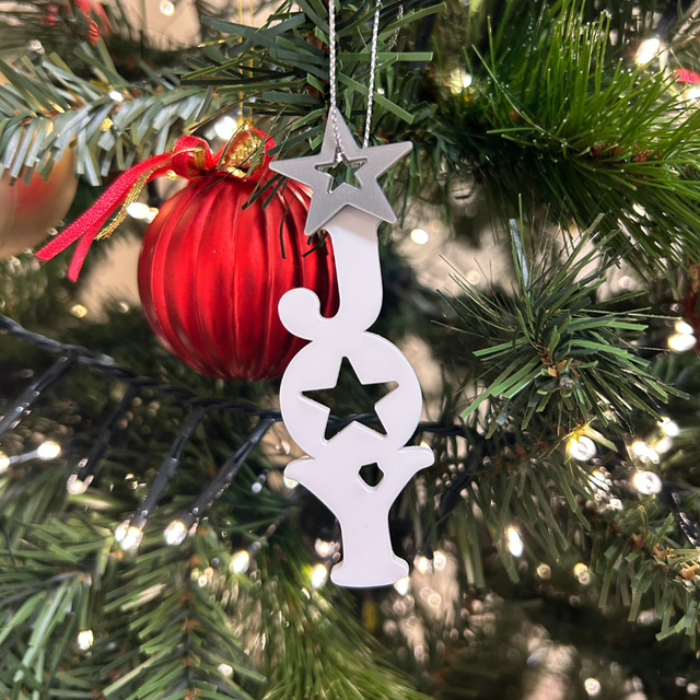 A beautifully crafted acrylic, JOY lettering bauble - lightweight, meaningful, and designed to brighten any tree. #sharethelight